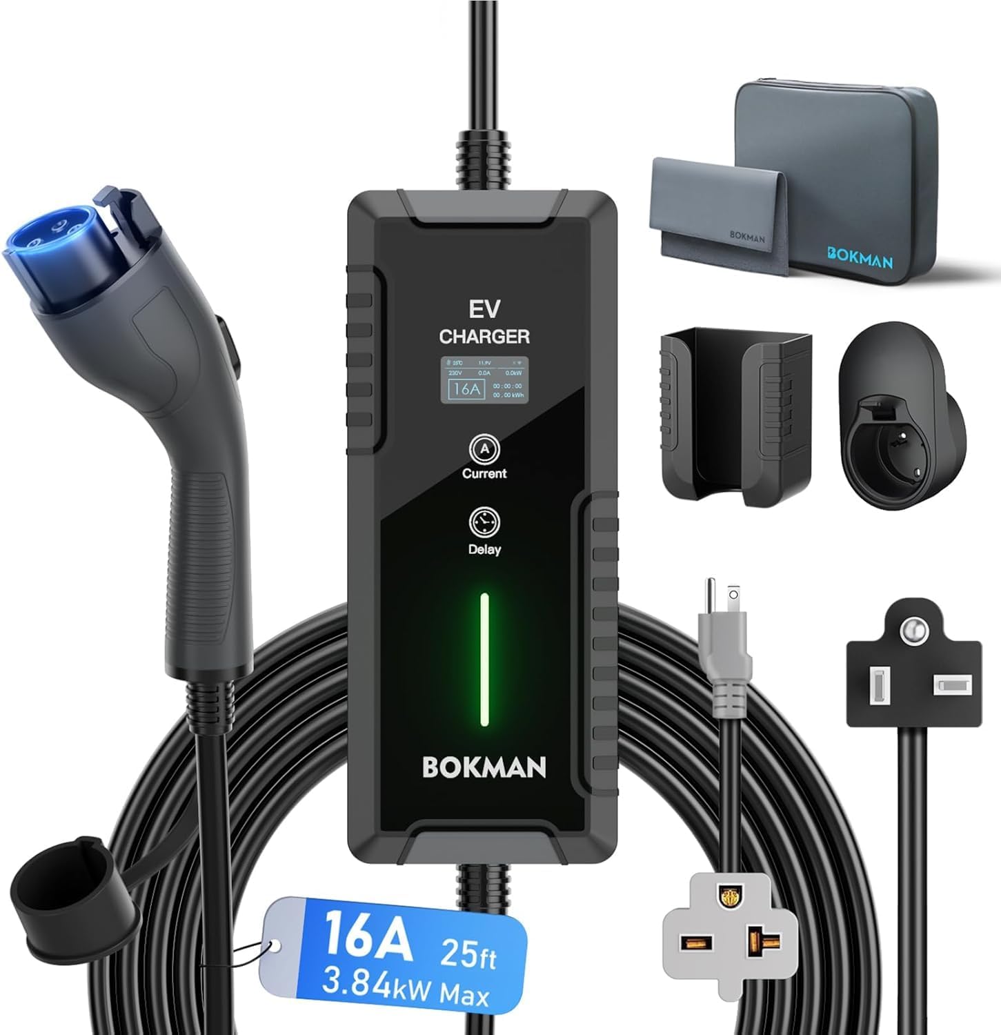 شاحن سيارة كهربائي محمول 1 من سيجوما، شاحن سيارة كهربائي محمول 16 امبير، كيبل 25 قدم