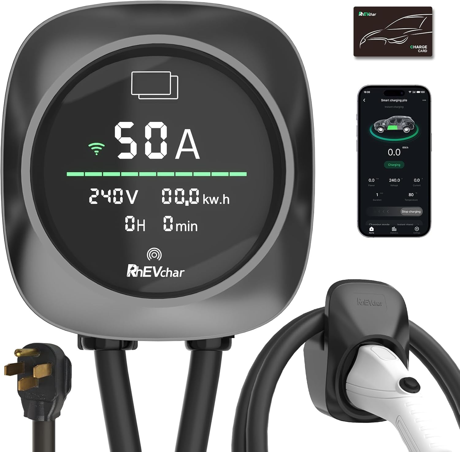 شاحن اي في 50 امبير بشاشة ذكية من المستوى 2 مع واي فاي، شاحن سيارة كهربائي منزلي